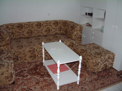 Erdgeschoss: Wohn-Esszimmer: Sitzgarnitur, TV-Sat, Esstisch, amerikanische Küche /Mikrowelle/, Bad mit Badewanne, sep. WC, 1 Schlafzimmer mit einem ausziehbaren Bett für 2 Personen.