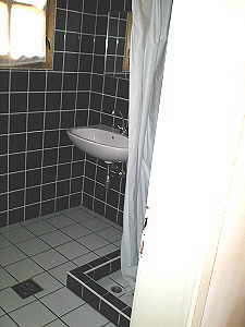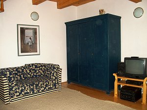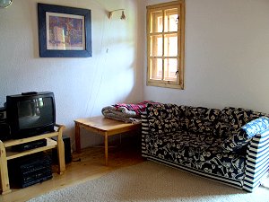 Wohnzimmer mit TV-Sat, Bad mit Dusche und WC. Vor dem Eingang ist für