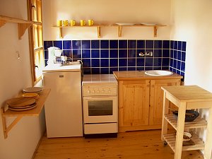 Appartements sind im Erdgeschoss folgende Zimmer: Koch- und Essecke mit