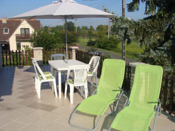 Gartenmöbel und Sonnenliegen. Parken und grillen im Hof möglich.