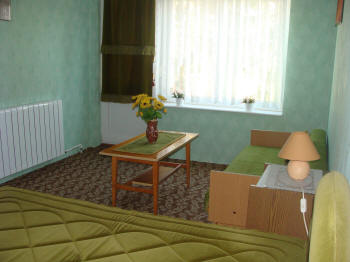 Zusatzbett und einmal mit zwei Einzelbetten. Im Wohnzimmer befindet sich