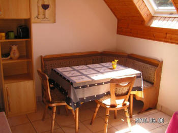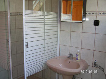 - Oben: Wohnzimmer, 2 Schlafzimmer, Badezimmer mit Dusche, Balkon