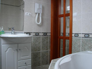 mit Badewanne und Bidet, 1 separates WC; im Eingangsbereich