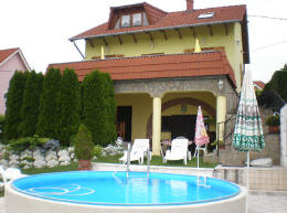 Schwimmbecken und Gartenmöbeln gelangen. Im Erdgeschoss gibt es ein