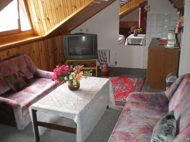 Wohnzimmer mit TV-Sat, eine Küche komplett, ein