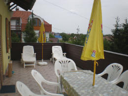 zwei Schlafzimmer und einen Balkon. Zum Haus gehören eine überdachte Terrasse,