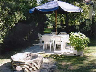 mit Garten, Terrasse und Pool. Das Ferienhaus befindet sich an der Grenze